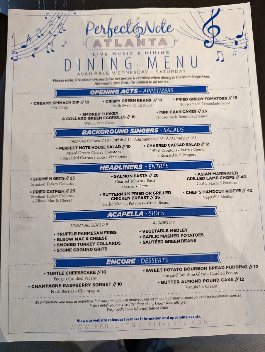 Welcome to Perfect Note ATLANTA, an extraordinary culinary destination situated at 3000 Windy Hill Rd SE in Marietta, GA. This vibrant eatery blends flavorful Southern-inspired cuisine with live entertainment, creating a welcoming atmosphere for food enthusiasts and music lovers alike.